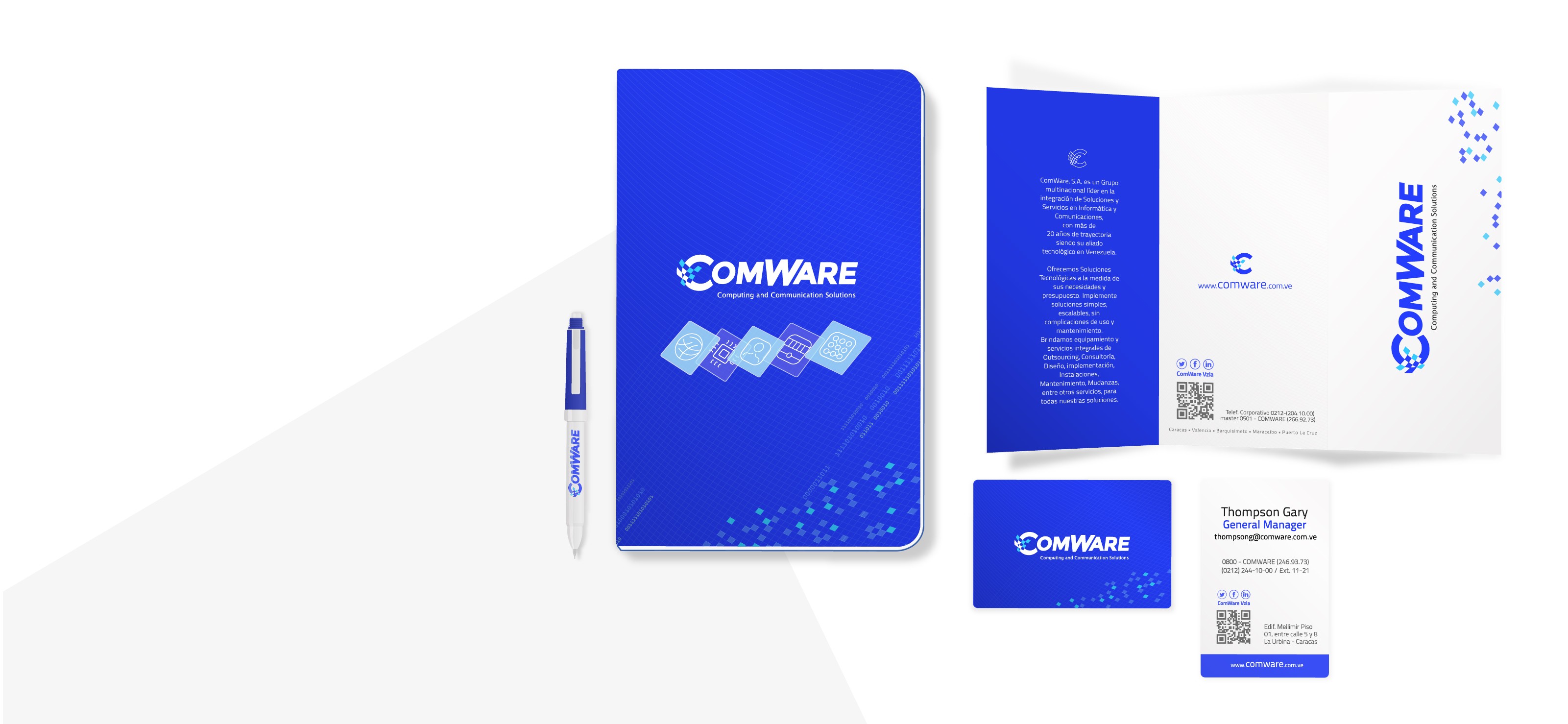 Comware Venezuela was a branch of a wide-reaching Latin American transactional, but it was tethered to an old-fashioned visual identity. They were eager to upgrade their service offering and their brand. For this project, I modernised their visual identity with a hand-crafted design.